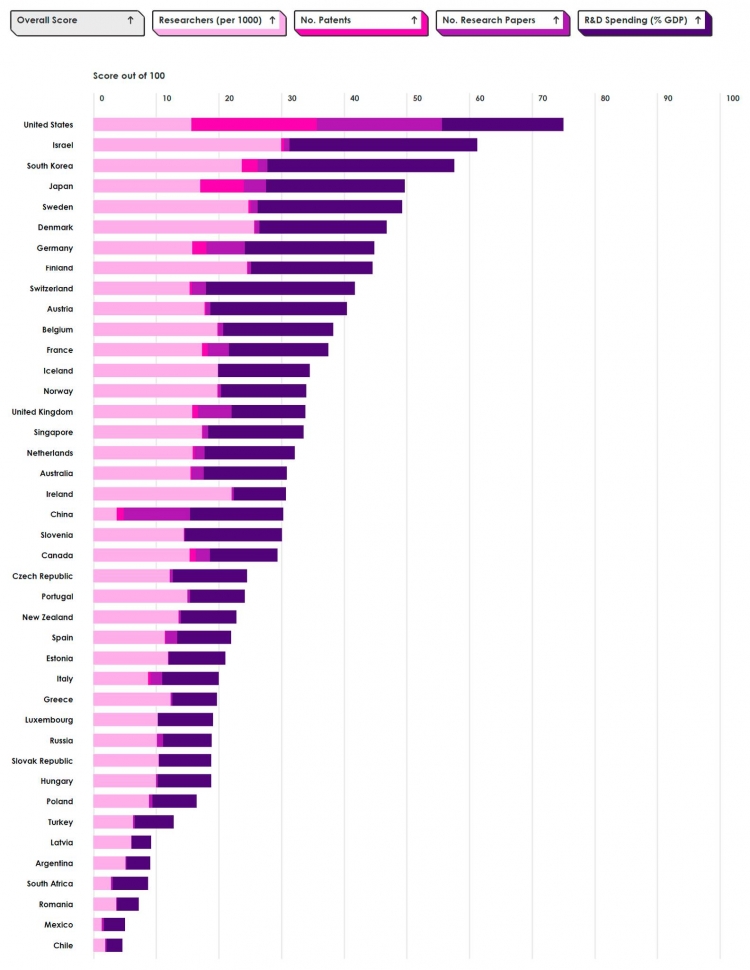 Qlobal elmi tərəqqini göstərən vahid bir ölçü yoxdur. Lakin elmi tədqiqatlara ayrılan xərclər, alınan patentlər bir ölkənin elmi potensialı haqda xeyli məlumat verir.