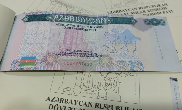 Məlumat üçün bildirək ki, özəlləşdirmə çekləri 1997-ci ildə dövlət qeydiyyatında olan bütün ölkə vətəndaşlarına miras əmlak payı olaraq verilib. Bu çeklər dövlət qiymətli kağızları olmaqla yanaşı, həm də mülkiyyət hüququ daşıyır. Çeklərin hər birinin dəyəri eynidir. Qanuna əsasən, özəlləşdiriləcək bütün iri və orta dövlət əmlakının ən azı 65 faizi özəlləşdirmə çekləri ilə əvəzlənməli, özəlləşdirmə prosesi bu şəkildə həyata keçirilməlidir.
