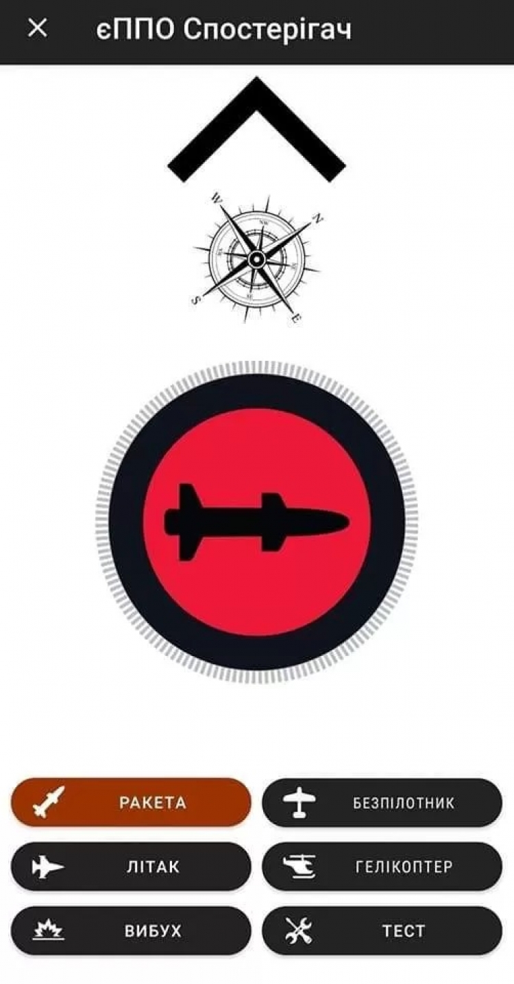 Tətbiq səmada qanadlı raketin, təyyarənin, helikopterin və ya dronun aşkarlanması barədə siqnal vermək üçün istifadə edilə bilən düymələrlə rahat naviqasiyaya malikdir. Smartfondan gələn siqnal xəritədə göstərilir və Ukraynanın hava hücumundan müdafiə sistemi pilotsuz təyyarələrin hansı istiqamətdə və haradan uçduğunu görə bilir.
