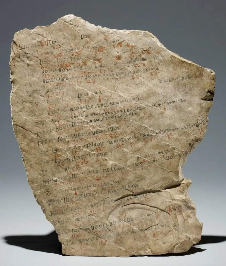 Eramızfan əvvəl 1250-ci ilə aid Misirin Thebes vilayətindən tapılmış işçilərə aid rəsmi qeydlər olan daş sənəd.