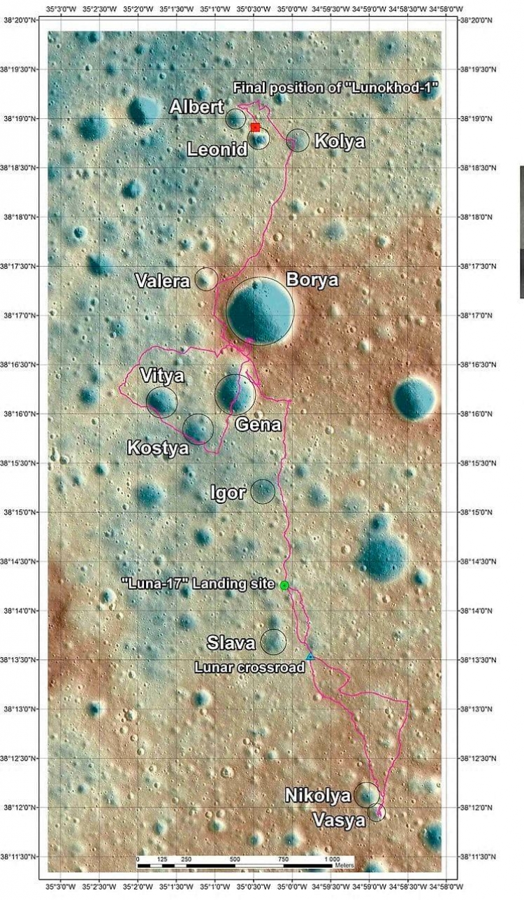 Kosmik rover hərəkət etdikcə Sovetlər kəşf edilən hər kraterə Vasya, Kolya (Коля), Vitya (Витя), Kostya, Slava (Слава), Gena (Гена), Leonid (Леонид) və b. adlar veriblər.