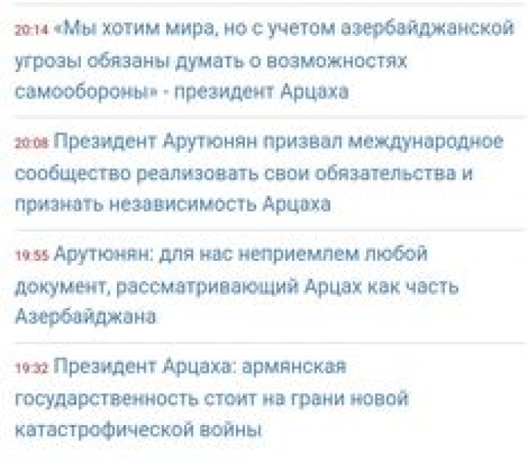 P.S. Aşağıdakı fotoda dünən Ermənistanın ən çox oxunan xəbər saytlarından birinin ard-ardına verdiyi başlıqlara baxın: